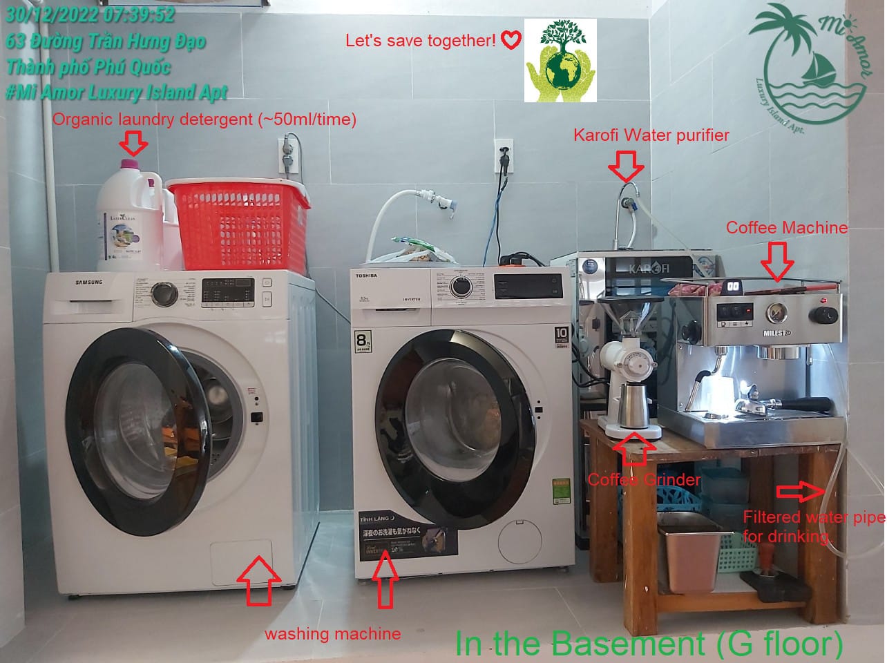 + Washing machine, dryer, coffee roaster (shared)